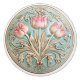 The "Tranquil Tulip Trio Ceramic Knob" showcases an exquisite arrangement of three tulips, rendered in soft pink and cream hues that evoke a sense of tranquillity and grace. The flowers are surrounded by lush, flowing leaves and intricate detailing, all highlighted with subtle golden accents. Set against a calming aqua background, the design exudes a timeless elegance that is characteristic of the Art Nouveau movement. The harmonious blend of colours and the meticulous craftsmanship make this knob not just a functional piece but a work of art. Perfect for those who appreciate the fusion of utility and beauty, this ceramic knob will enhance the aesthetic of any room with its graceful and refined presence.