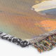 A quality printed throw has its advantages. This is a much finer weave throw than its loopier cousins, and though lighter, it is worth the investment for custom room accessorizing. The back is much prettier than the typical brown, and the fringe on the long sides very vivid, the selvage nicely done. Before photographing, I washed the throw in cold water, delicate, with a thicker woven throw the same size. On tumble dry low, this throw was dry in half the time as the other. This is a very practical quality if you use throws for furniture covers or to wrap up in frequently. The sleekness of the fabric makes it a great layer for accenting or protecting without the feeling of sitting on too much stuff. Perfect for napping or when you feel a light chill coming on. The color printing is beautiful and on this fabric, matched the design and color of my Photoshop image. This is an advantage for blending room fabrics and colors. The fringe on the short sides prints the colors from the design image and therefore varies from the side fringe. I streaked a white fractal line through the plaid pattern to give the illusion of weaving. This printed as crisp as an illusory thread, and put some white in the short side fringe, showing another advantage of print vs loomed- for artistic purposes, line lines, detail, and color integrity can be planned and preserved. My loomed throws have color limitations and more of a needlepoint texture. Print throws reproduce an exact image. The throw felt a little stiff straight out of the package, but this went away in the first delicate wash. Of course I searched the wash water for ink or bleeding and there was none.