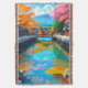 A serene Japanese town nestled beside a river with Mt. Fuji in the background and its reflection on the water.
