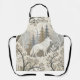 This serene winter forest apron features a majestic white wolf at its centre, surrounded by snow-dusted trees in soft tones of cream, brown, grey, and pale blue. A second wolf is subtly nestled in the lower corner, hinting at unseen life within the quiet woodland. With a mix of bare-branched and evergreen trees, framed by delicate decorative elements, this design evokes natural beauty, stillness, and a touch of winter magic. Perfect for nature lovers, animal enthusiasts, and seasonal or fantasy-themed settings.