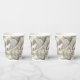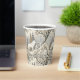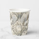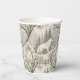 This serene winter forest paper cup features a majestic white wolf at its centre, surrounded by snow-dusted trees in soft tones of cream, brown, grey, and pale blue. A second wolf is subtly nestled in the lower corner, hinting at unseen life within the quiet woodland. With a mix of bare-branched and evergreen trees, framed by delicate decorative elements, this design evokes natural beauty, stillness, and a touch of winter magic. Perfect for nature lovers, animal enthusiasts, and seasonal or fantasy-themed settings.