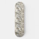 This serene winter forest skateboard features a majestic white wolf at its centre, surrounded by snow-dusted trees in soft tones of cream, brown, grey, and pale blue. A second wolf is subtly nestled in the lower corner, hinting at unseen life within the quiet woodland. With a mix of bare-branched and evergreen trees, framed by delicate decorative elements, this design evokes natural beauty, stillness, and a touch of winter magic. Perfect for nature lovers, animal enthusiasts, and seasonal or fantasy-themed settings.