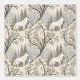 This serene winter forest wallpaper features a majestic white wolf at its centre, surrounded by snow-dusted trees in soft tones of cream, brown, grey, and pale blue. A second wolf is subtly nestled in the lower corner, hinting at unseen life within the quiet woodland. With a mix of bare-branched and evergreen trees, framed by delicate decorative elements, this design evokes natural beauty, stillness, and a touch of winter magic. Perfect for nature lovers, animal enthusiasts, and seasonal or fantasy-themed settings.
