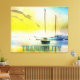 Pastel colours canvas print wall art. sailboats and docked in calm waters with 2 seagulls flying overhead. A true scene of peace, quiet and tranquillity