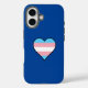 iPhone 11 case with a symbol of a heart in the colours of the trans pride flag. Pink, white and blue design