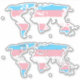 Custom-cut vinyl stickers with the map of the world in the colors of the transgender pride flag; design with two versions of the map - with and without an outline; LGBTQ pride design