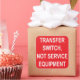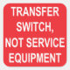 A sheet of six, 3" x 3" TRANSFER SWITCH, NOT SERVICE EQUIPMENT sticker labels for electricians to identify generator transfer switches.