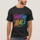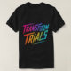 The t-shirt design features the phrase "Transform Trials" in vibrant, contrasting colours. The words are arranged in a dynamic, eye-catching layout, creating a visually engaging and inspiring piece. The design is clean and minimalist, focusing solely on the impactful message. It's a perfect choice for those seeking a t-shirt that not only looks stylish but also conveys a powerful message of overcoming challenges and turning adversity into growth.