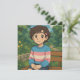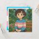 Cute anime transgender person in a trans sweater sitting outside on a bench. A sweet blank notecard to write a note to yourself or to a friend on.