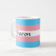 Transgender Flag encircles this mug. No need to hide, show your pride! Add your name or other message - or erase to have a plain flag.