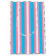 Fun gift bag in light blue, pink and white stripes, hearts and rainbows to stand for the transgender flag colors.