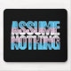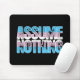 The words Assume Nothing in the colours of the Transgender Pride Flag. Has a slightly distressed or grunge look. Celebrate LGBTQ Pride and Support Transgender Visibility, Awareness, and Equality.
