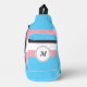 Sling Bag with the transgender pride flag with rainbow stripes of blue, white, and pink, trans pride design with a custom text field for your initial