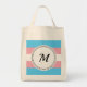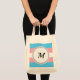 Tote bag with the transgender pride flag with rainbow stripes of blue, white, and pink, trans pride design with a custom text field for your initial