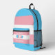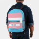 Backpack with the transgender pride flag with little hearts in the centre of the design. Pink, white, and blue flag of the trans pride movement; with an editable text field for your name or message