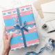 Wrapping paper with the transgender pride flag with little hearts in the centre of the design. Pink, white, and blue flag of the trans pride movement; with an editable text field for your name or message