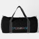 Duffle Bag with text “Pride” in colors of transgender flag, rainbow love trans pride design on black background