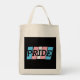 Tote Bag with text in the colours of the transgender pride flag. Pink, white, and blue flag of the trans pride movement, on a blue background