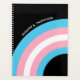 Beautiful personalised transgender planner gift for an LGBTQ friend featuring the pretty trans flag colours shaped into a blue, pink, and white rainbow.