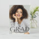Modern and bold "Photo" graduation announcement cards, featuring design elements of dark transparent fashion style text reading "GRAD", along with a minimalist typography. The graduate's photo on the front of the card highlights the entire surface. The back of the card offers personalised text spaces for information about your graduation and future journey. Perfect for the high school, college and university grad student seniors.