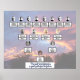 A partially transparent photo of a glowing sunset with purple clouds forms the background for photos and names of four generations to create this family tree poster. Personalise with your own photos and family names. The oval templates are set up to use square or rectangular photos. "The past remembered is a good guide for the future" is printed across the bottom. Contact me if you need help personalising.
