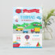 Vibrant Transportation Invitation Cards featuring colourful cars, trucks, buses, ships, boats, planes, helicopters and all things that move. Personalise this awesome Transportation invitation with your child's name, age and party details easily and quickly, simply press the customise it button to further re-arrange and format the style and placement of the text. Includes a matching back of invite design.