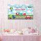 Cute transportation theme backdrop banner with train, car, truck, plane and more.