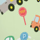 Cute and fun vehicles and signs pattern design.