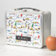 This is a standard metal lunchbox that appears to work just fine. We designed this box ourselves with an uploaded photo and custom text on the front and back. It looks absolutely beautiful except the front of the lunchbox is not centered like it shows in the photo. The print borders don't align with the inset flat part of the box where the preview photo online showed it perfectly centered in there. The back looks nice and centered though.