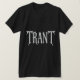 Minimal front with “Trant” in bold, contrasted by an abstract design and cryptic text on the back—made for those who wear mystery and edge with style.