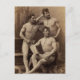This postcard features a vintage photograph of three handsome, muscular male circus trapeze acrobats from the early 1900s.