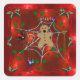 Poor little gingerbread guy. He's trapped in a spider web decorated with holiday bulbs, lights, and sprigs of holly. And now a black widow spider is getting ready to devour him.