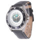 My husband loves the watch, he likes the dial, the graphics, the band, and it keeps perfect time.