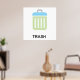 An icon of a trash can with the word trash underneath. This design looks really effective on these Poster