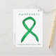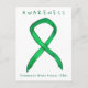 The green ribbon colour is used to show awareness for Traumatic Brain Injury (TBI). Customise this awareness ribbon postcard with your own custom personalised message that supports Traumatic Brain Injuries Awareness.