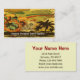 Illustration of a tropical vacation with palm trees, surfer, and an aeroplane on a colourful and modern background in warm earth tones. Great business card for a travel agent or agency.