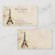 Business cards featuring a vintage illustration of the Eiffel Tower on a retro floral background.