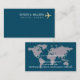 Ocean Blue modern and professional business card with basic information only... your name ('unica one' font style) with custom travel related occupation (travel-agent) and the image of an aeroplane... and address, email and phone at the back...