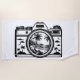 Step into vacation mode with this design featuring a camera capturing a beach scene. The design features a vintage camera pointed at a tropical paradise complete with sand, ocean waves, and swaying palm trees framed perfectly in the camera lens.