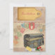 Vintage style travel themed wedding invitations featuring a trunk and a stamp background. Easily customisable so you can add all of your own details.