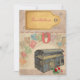 Vintage style travel themed wedding invitations featuring a trunk and a stamp background. Easily customisable so you can add all of your own details.