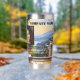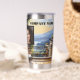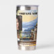 Thermal tumbler featuring your custom logo, photo and texts on a photo of your custom destination or other topic. Nice for travels or a road trip.