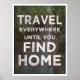 The only way to find your true home is to travel everywhere. Inspirational poster for those who have a roaming spirit.