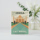 Retro style travel India Taj Mahal postcard.