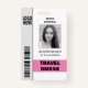 Medical staff travel nurse white, pink and light grey photo template badge with logo and barcode . Personalise this hospital staff photo ID card badge with your name, ID, title, hospital name, logo and barcode. Add more information on the back.