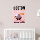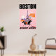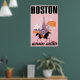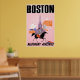 Vintage travel poster for Allegheny Airlines showing Paul Revere on horseback, the Old North Church, the Mayflower ship, and Faneuil Hall in Boston, Massachusetts. circa 1950.