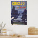 Vintage travel poster for Trans World Airlines flights to Chicago showing bridges a spanning river at night, circa 1960.
