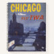 Vintage travel poster for Trans World Airlines flights to Chicago showing bridges a spanning river at night, circa 1960.