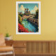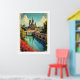 Travel poster Notre Dame, France cityscape.