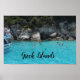 Greek Islands of Paxos-Antipaxos in the Ionian Sea on a travel poster with people swimming in the crystal clear waters.